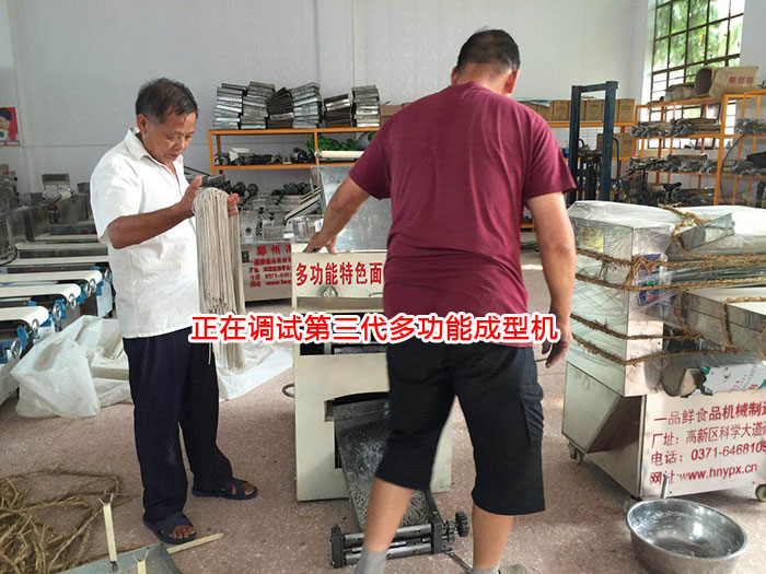 然后工作人員帶領凌大伯來到一品鮮工廠展廳,給凌大伯介紹了不同的設備型號及功能區(qū)別,凌大伯預計后期生產(chǎn)量不是很大,就根據(jù)建議定購了全套第三代多功能成型機,并當天下午在工廠進行調(diào)試設備。