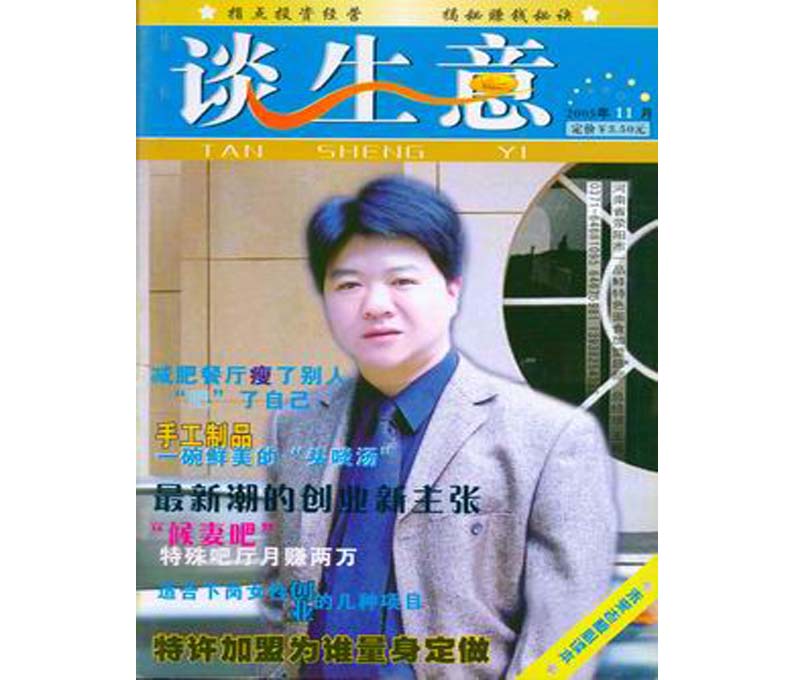 鄭州市一品鮮食品機(jī)械制造廠總經(jīng)理王威先生,經(jīng)過談生意雜志專業(yè)評(píng)選委員會(huì)的評(píng)定,登上2005年11月雜志封面。這是對(duì)一品鮮成就的極大肯定。