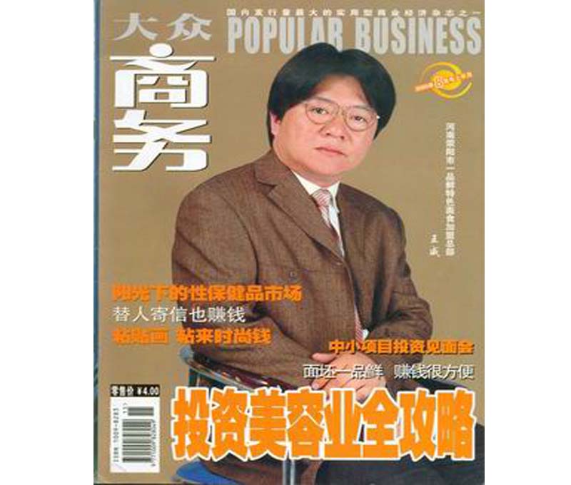 鄭州市一品鮮食品機(jī)械制造廠總經(jīng)理王威先生,經(jīng)過(guò)大眾商務(wù)雜志專業(yè)評(píng)選委員會(huì)的評(píng)定,登上2003年9月雜志封面。這是對(duì)一品鮮成就的極大肯定。