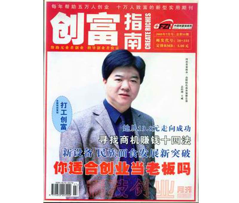 鄭州市一品鮮食品機(jī)械制造廠總經(jīng)理王威先生,經(jīng)過創(chuàng)富指南雜志專業(yè)評選委員會的評定,登上2009年9月雜志封面。這是對一品鮮成就的極大肯定。